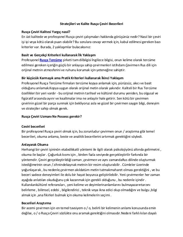 Rusça Metin çeviri